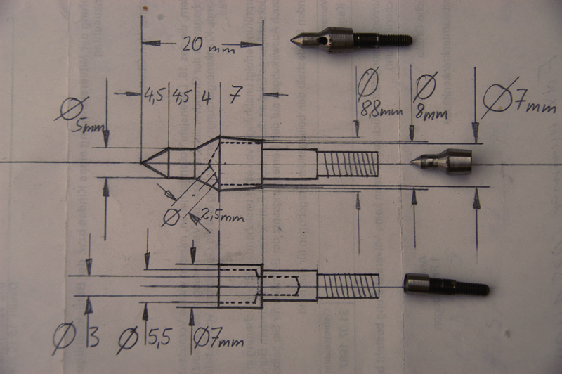 Jetzt muss ich die Löcher in ihrer Tonhöhe noch angleichen. Das regelt sich durch die Größe.