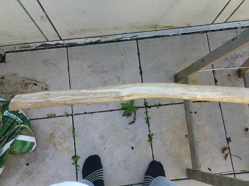 naja - was willst Du denn mit einem 2m Schießholz? Das ist gut zu lang. Es gibt drei Möglichkeiten: entweder a) absägen, oder b) den Stave rausarbeiten,  dämpfen und dann begradigen, oder c) ihm auf der geraden Seite die gleiche Krümmung reindämpfen und dann als "Recurves" nutzen. Hat jemand noch andere Vorschläge???