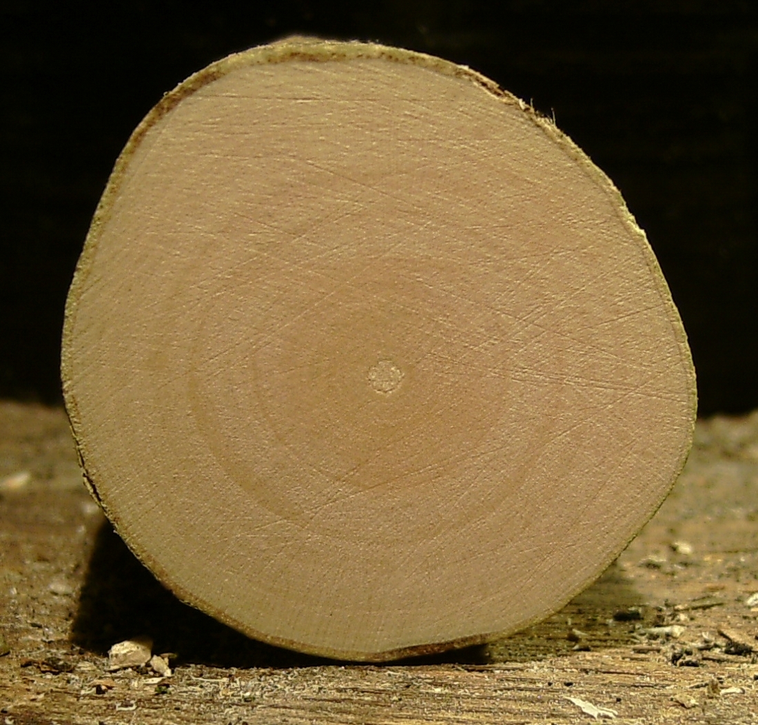 Der Durchmesser beträgt bei Wolligem Schneeball in der Regel bei einem Spine von 60 ca. 0,8 cm fertig geschliffen, bei Hasel bis zu 1,2 cm Rose liegt irgendwo dazwischen.