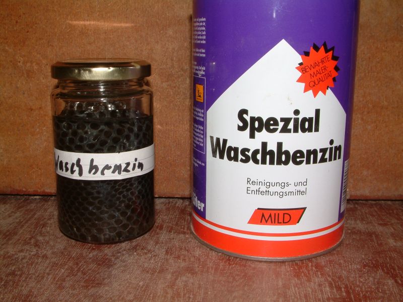 Bevor jetzt die Fragen kommen, ob man auch ölen oder wachsen kann, hier die Antwort: Es geht nicht um das Konservieren gegen Feuchtigkeit, sondern es geht hier um das Stabilisieren der fragilen Haut. Mit einigen Lackschichten eines Fußbodensiegellacks erhalte ich eine hornharte Oberfläche, die sich nicht mehr so leicht lösen läßt.