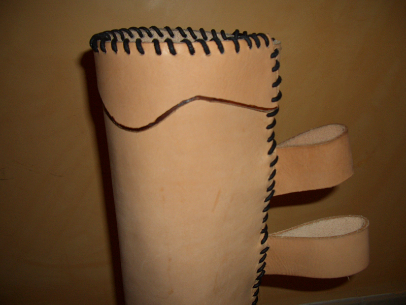 Schlicht, aber wahrscheinlich funktionabel ^^. Gedacht als Seitenköcher, oder? 12cm Durchmesser wird bei einem vollen Satz Pfeile vielleicht etwas eng, könnte ich denken ... hast du in den Boden noch irgendwas reingelegt/genäht? Sonst hast du bald Löcher oder zumindest Stoßspuren an der Unterseite ... >:D