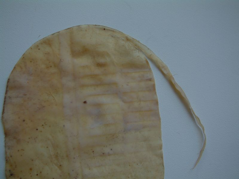 Ich habe festgestellt, dass man die Rohhautsehne etwa 1-2 cm kürzer als die Originalsehne machen muss, weil sie sich anfagns noch dehnt.
