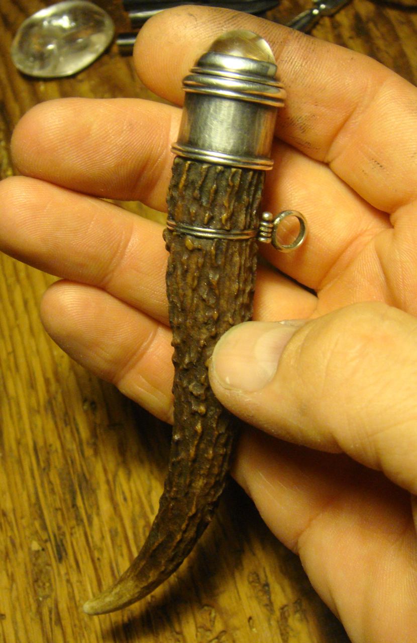 Geweihspitzen, Silber, Mondsteine, Quarze.