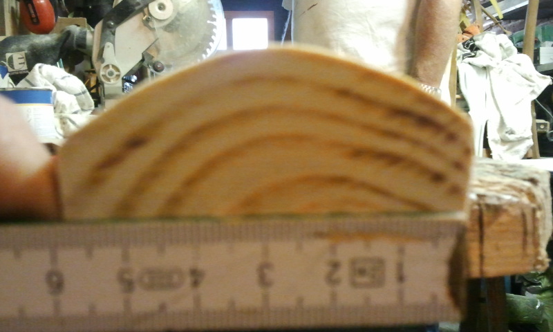 Und ich bin ziemlich Ratlos was den Randverlauf des Bogens angeht. Also die dicke Hälfte hat noch einen Teil des Markkanals. Ist das ne Richtlinie wie der Bogen zu laufen hat? Weil wenn ja, dann wirds übel, weil der ungefähr läuft wie die Saarschleife. Oder sollte man erst ein wenige Dicke wegnehmen und dann gucken wie das Holz dort verläuft?