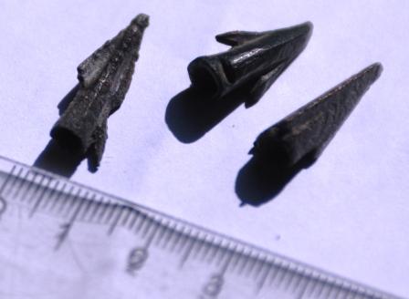 Die anderen Beiden haben Widerhaken, eine drirekt aus der Spitze gearbeitet, die andere weiter hinten angesetzt.