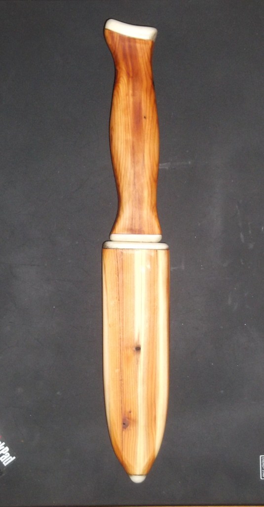 Die Scheide ist übrigens aus 8x5mm Leistchen gekantelt...Der Griff ist aus einem Stück Vollholz...