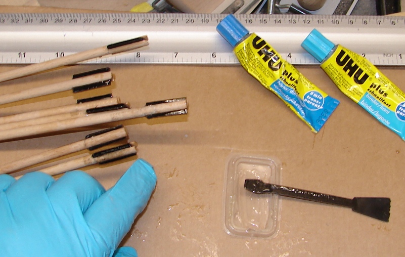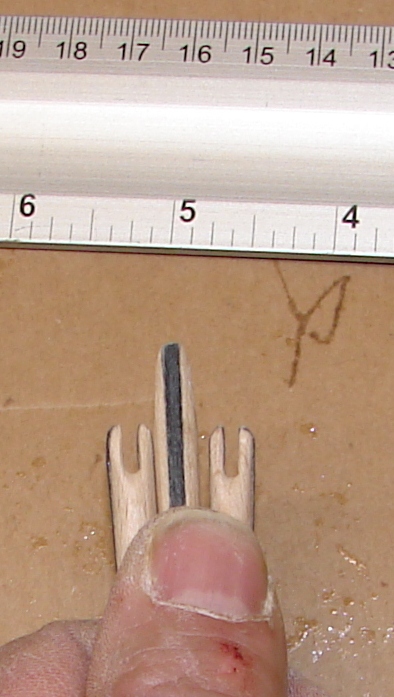 Nach dem Sägen bearbeite ich den Sägeschlitz mit einer ca. 2mm dicken Schlüsselfeile, um auf das Endmaß zu kommen, das dauert pro Pfeil bei mir weniger als 3 Minuten.