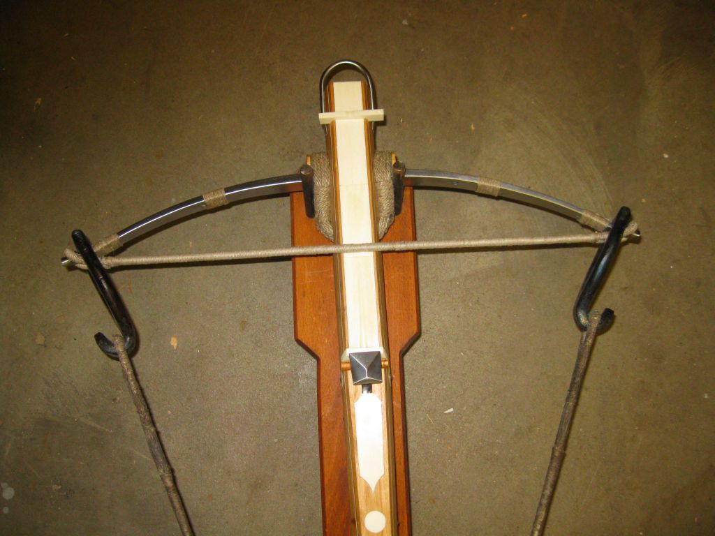 Die Säule ist geschliffen, der Bogen eingebaut, die Sehne ist auch schon drauf.