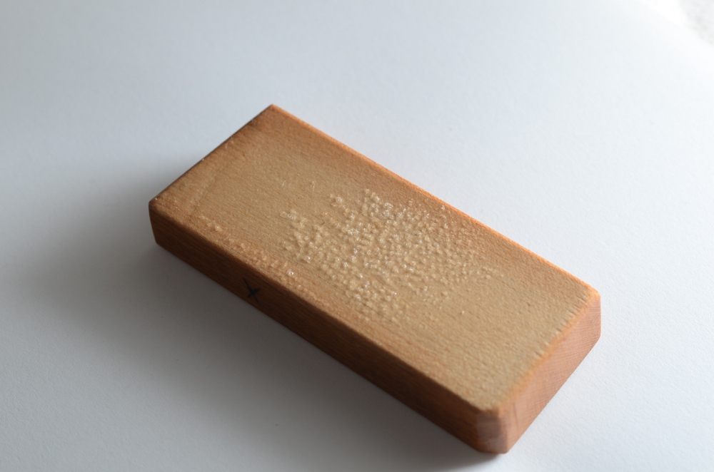 Heute haben die Hölzchen zwischen den Gewitterschauern nochmals etwas Sonne bekommen, nun ist das Tungöl langsam durchgetrocknet, denke ich. Ein wenig Öl ist wieder ausgetreten, allerdings nur so viel, dass die Holzoberfläche etwas geglänzt hat. Habe das dann abgewischt und weiter an der Sonne trocknen lassen.
