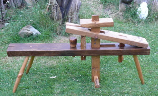 Grundsätzlich, zu Schnitzbankbau allgemein: Der Drehpunkt des Druckhebels sollte möglichst weit oben liegen, um eine günstige Übersetzung zu erreichen, d.h. der Fuss sollte immer am längeren Hebel sitzen bzw. drücken.