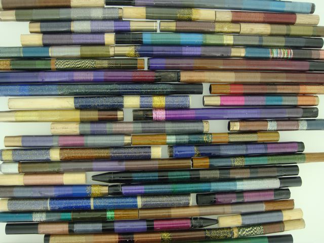 achtung: die seide ändert beim lackieren den farbton und helligkeit. darum empfiehlt sich die anfertigung eines musterstabes(pfeiles) mit den diversen farben.