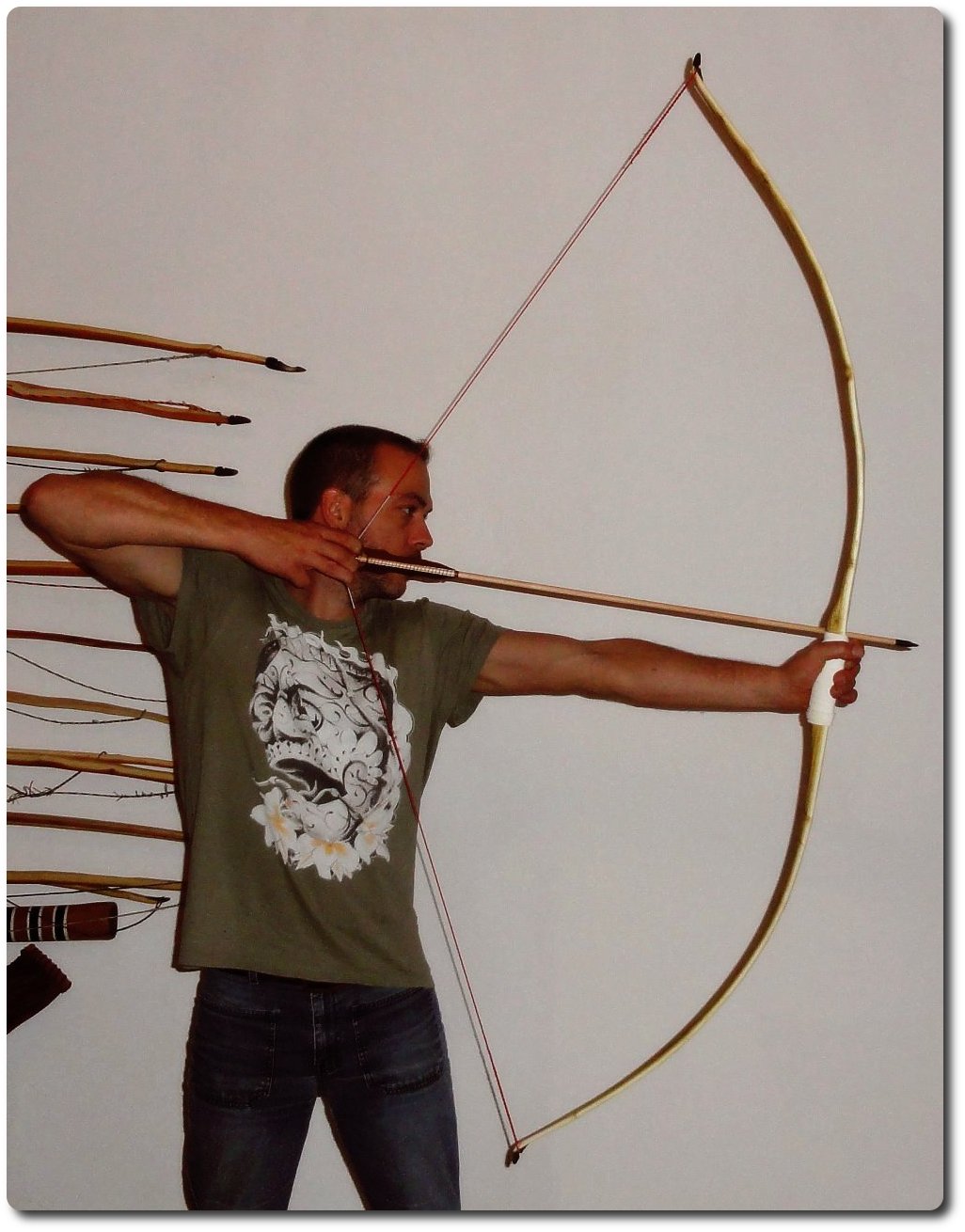 Mich wundert nur, dass der Bogen auf manchen Bildern eine Griffwicklung hat und auf anderen wieder nicht. Warum hast du eine draufgemacht? Da sieht man doch den schönen natürlichen Wuchs des Griffes gar nicht mehr.
