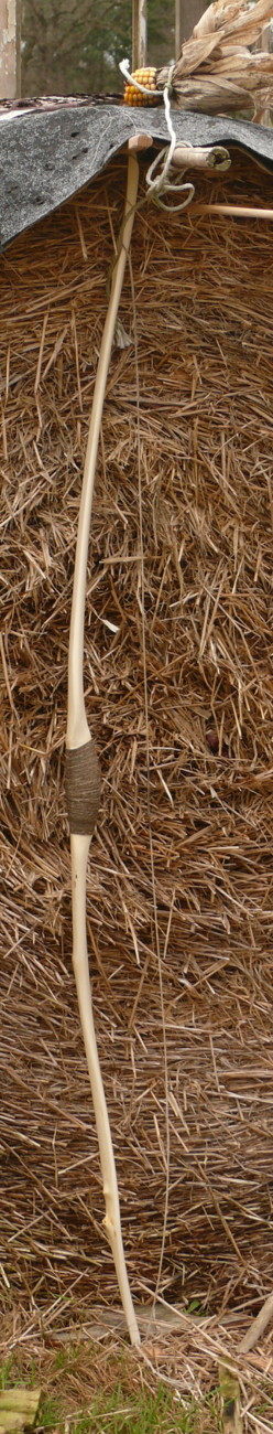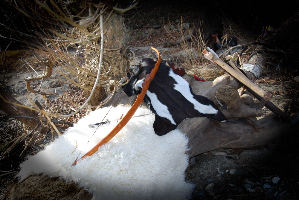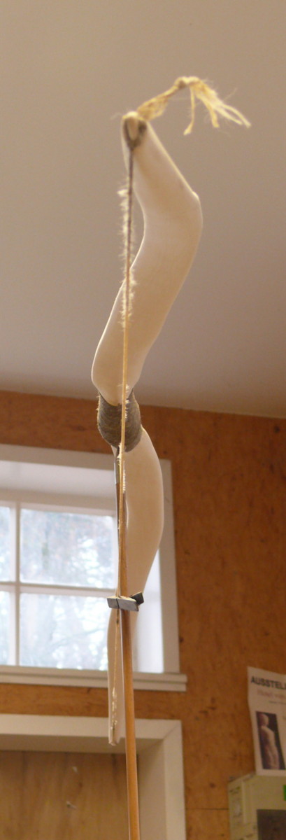 Die Idee dahinter war, einen schlichten, funktionalen Bogen zu fertigen und sich dabei auf wenige "einfache" Werkzeuge zu beschränken. Aufgrund der natürlich gewachsenen Form des Holzes, hatte ich mich entschlossen, dem Bogen ein dem Winkingertypus ähnliches Design zu geben; daher die "langen Nocken".