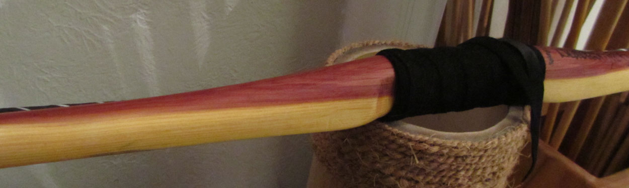 Nocken Mooreiche; Pfeilanlage Knochen; Griff Lederband