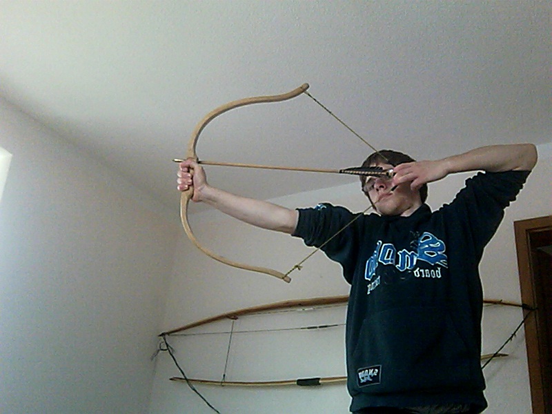 Man kann den Bogen immer kürzer bauen, man kann das Zuggewicht durch entsprechend dickes und breites Material ziemlich hoch bekommen, aber es bildet sich dabei auch immer stärker Set.