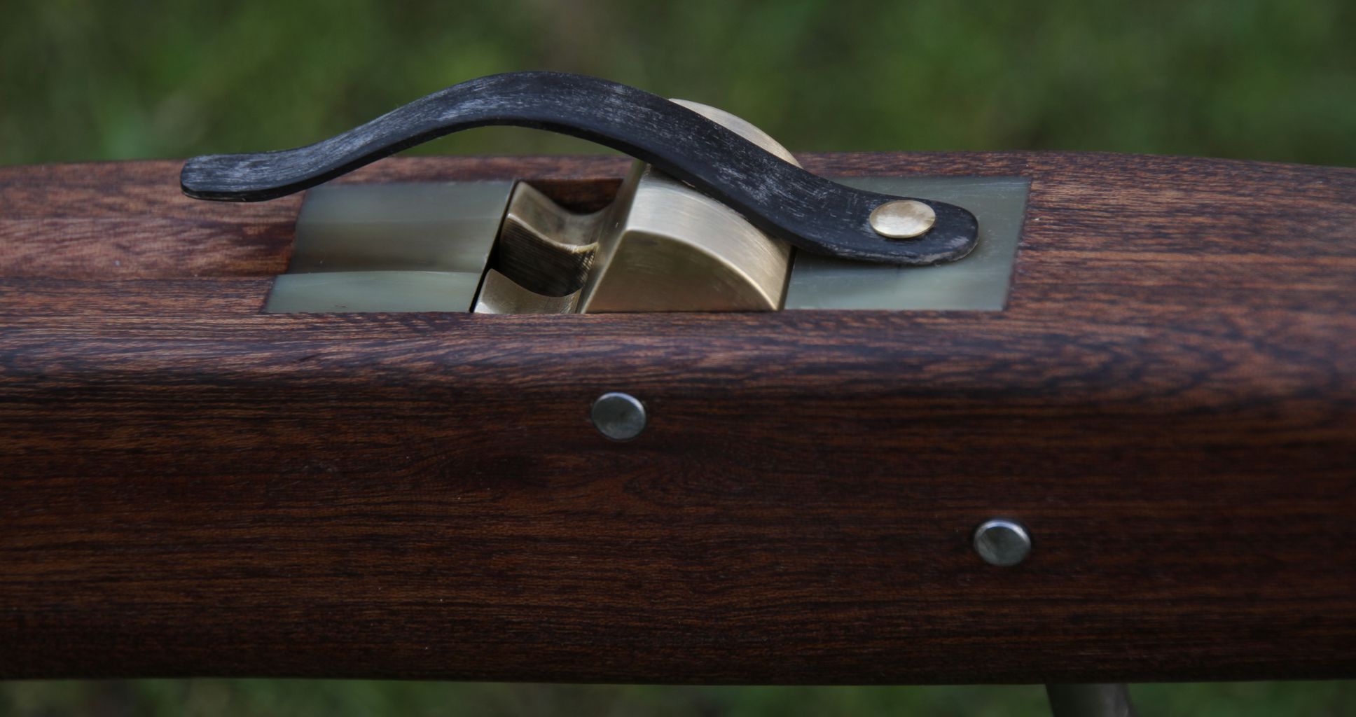 Abzugsbügel: 10mm Flachstahl, ausgeschnitten und in Form gebracht. Mit Federblech (alter Spachtel) einrastend.