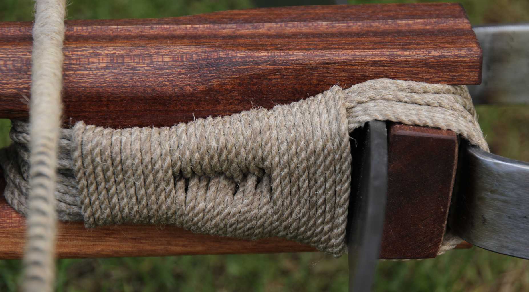 Sehne: Endlossehne, 61 Strang Bcy B55, Ohren aufgedoppelt. Wicklung aus einer Art Hanfschnur. Mittenwicklung gedoppelt.