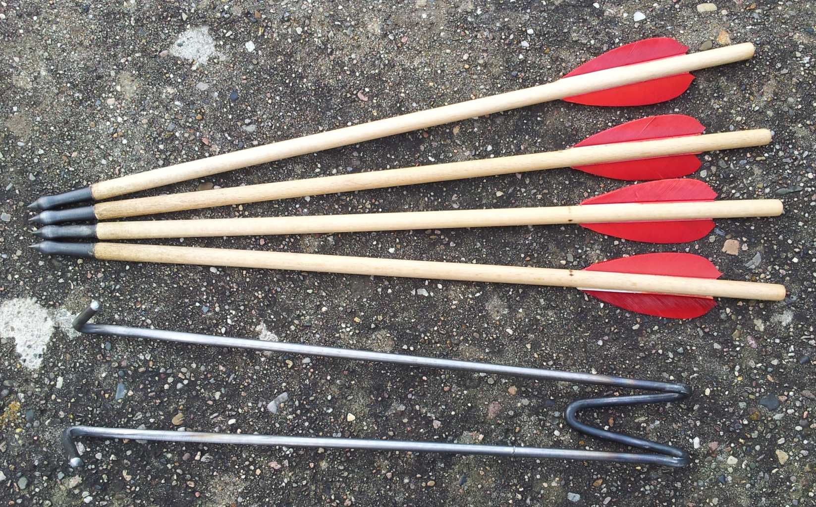 Bogen: Stahl. Blattfeder beschmiedet und angelassen(nicht von mir). Von mir getapert und gefinished.