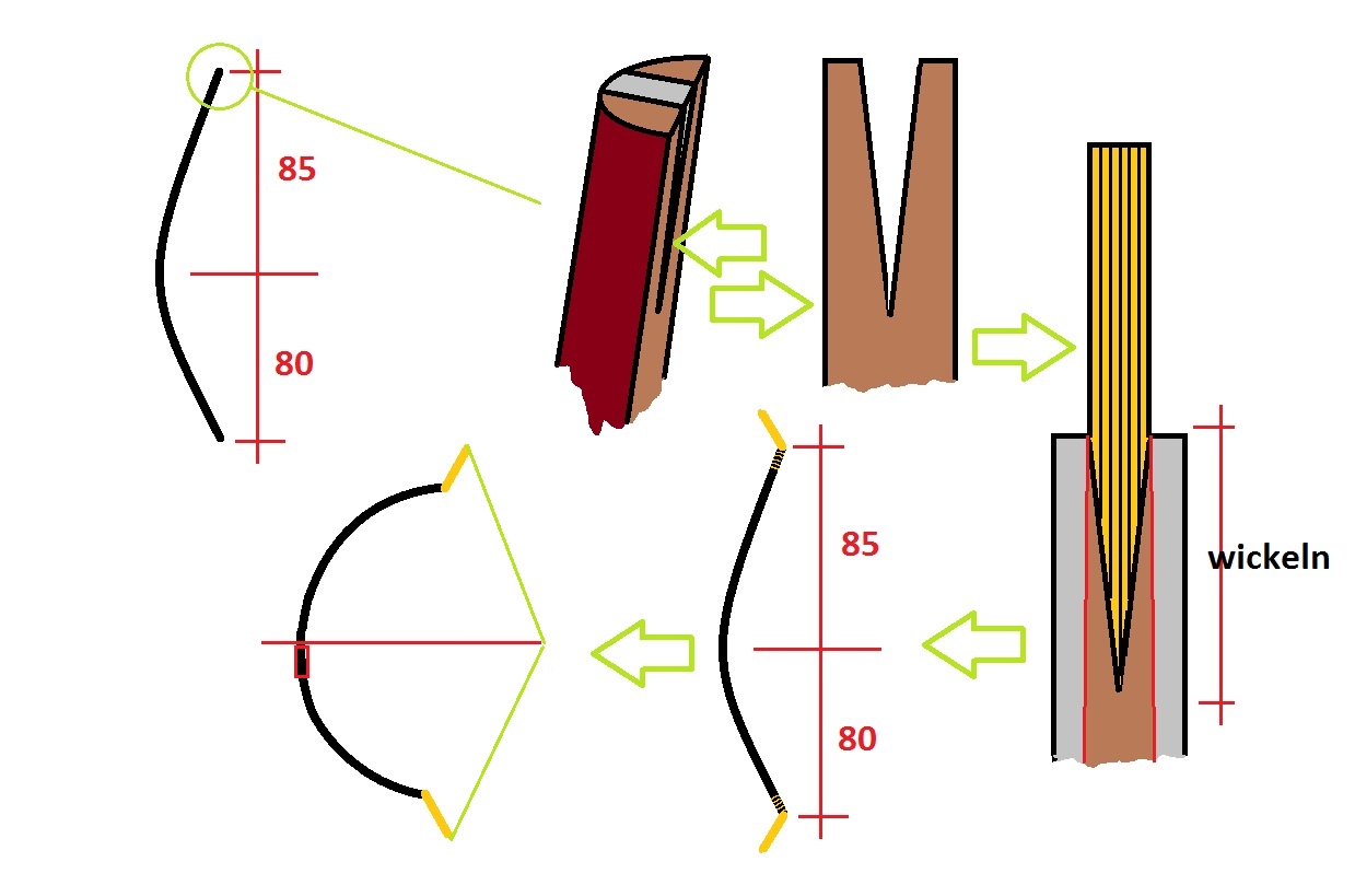habe erst an sowas Yumi-artiges gedacht, aber dafür ist das Holz zu schwer, also eher was im Reiterbogen-stil. Hanf hab ich noch