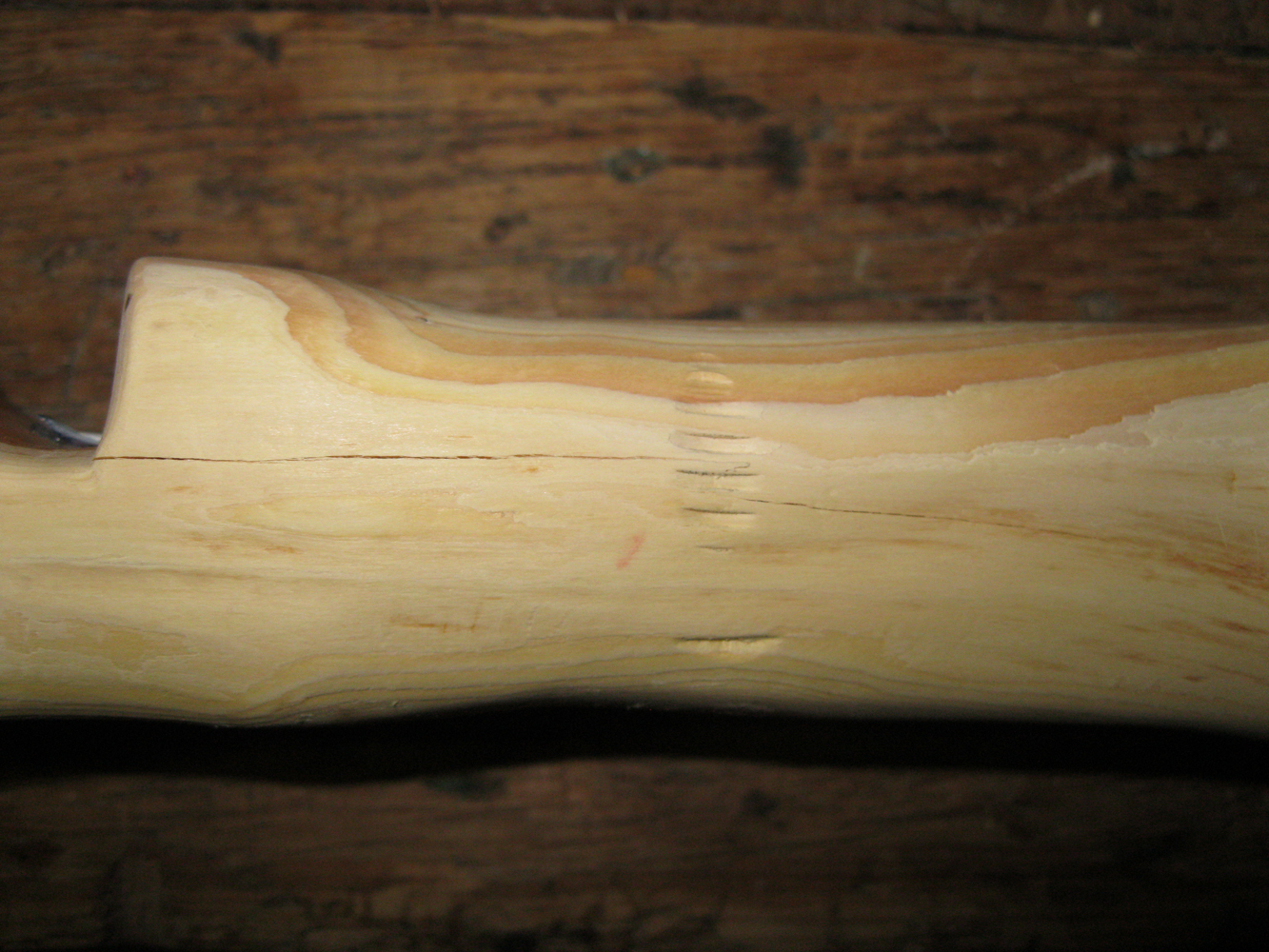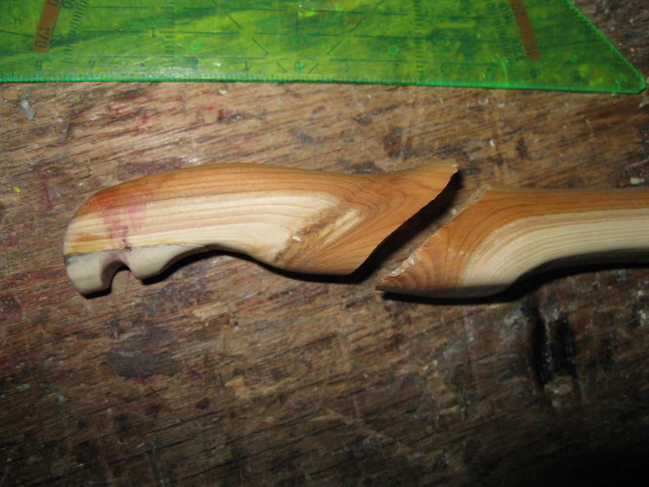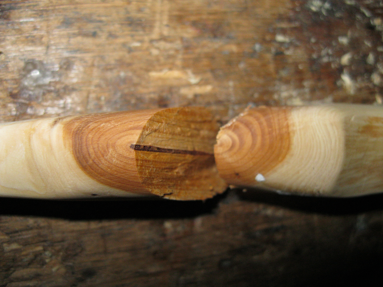 Der musste fast brechen, die Maserung war gar arg verletzt.