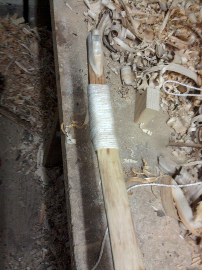 Den Bogen ist nun fast fertig; heute wurde er fertiggetillert, eingeschossen und abgeschliffen. Nur das Finish und eine richtige Sehne fehlen noch. Beim Schiessen fühlt er sich gut und überraschend schnell an (wobei ich erst wenige vergleichbare Bögen in Händen hielt und nur auf kurze Distanz im Garten geschossen wurde). Das Zuggewicht beträgt 52 Pfund bei einem Auszug von 28 Zoll.