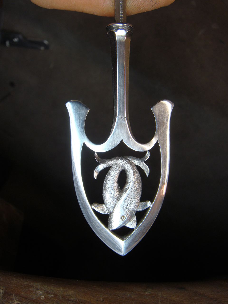 Das Muster wurde zuerst grob mit der Laubsäge ausgesägt und dann mit Meisseln und Sticheln modelliert.