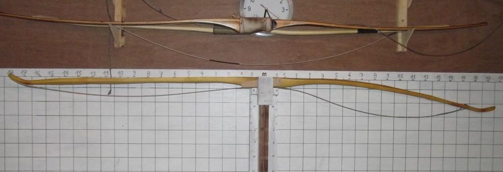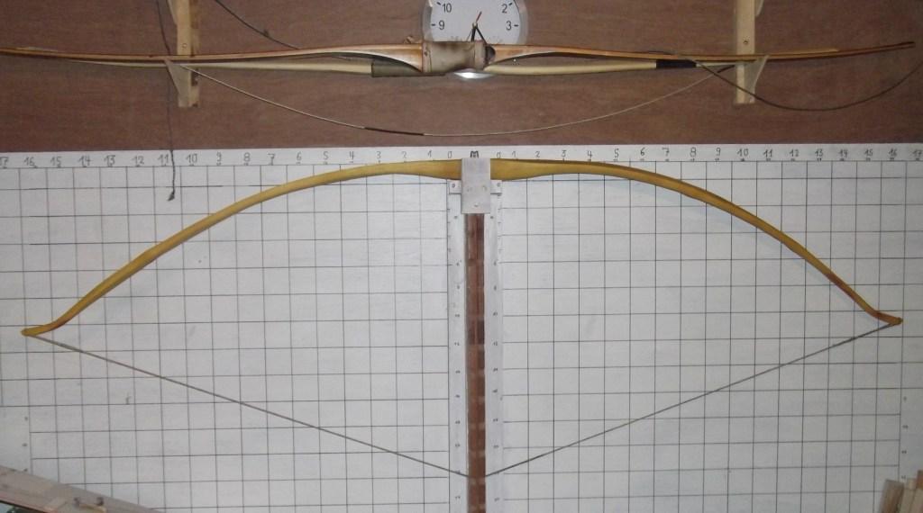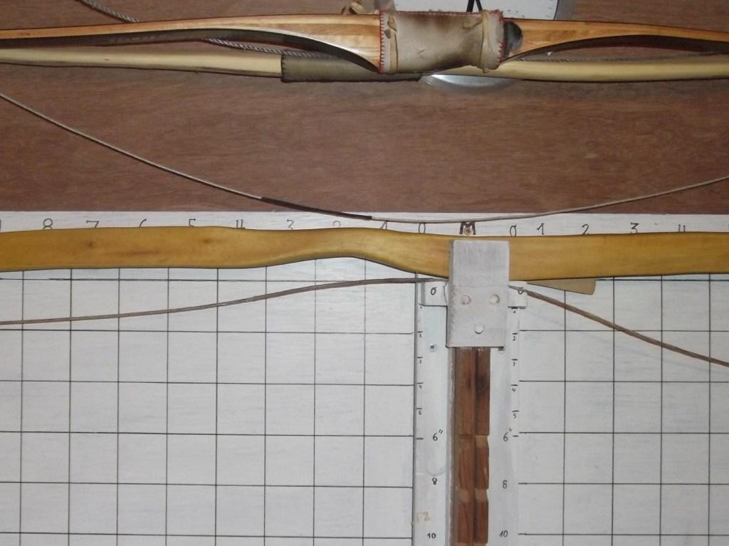 Durch einen snaky geformten "Schlenker im Holz ziemlich genau in der mitte war schon von vornherein klar, daß dieser als Langbogen mit steifen Griff und natürlichem Schußfenster (FAST schon ein Centershot) gebaut werden wollte.