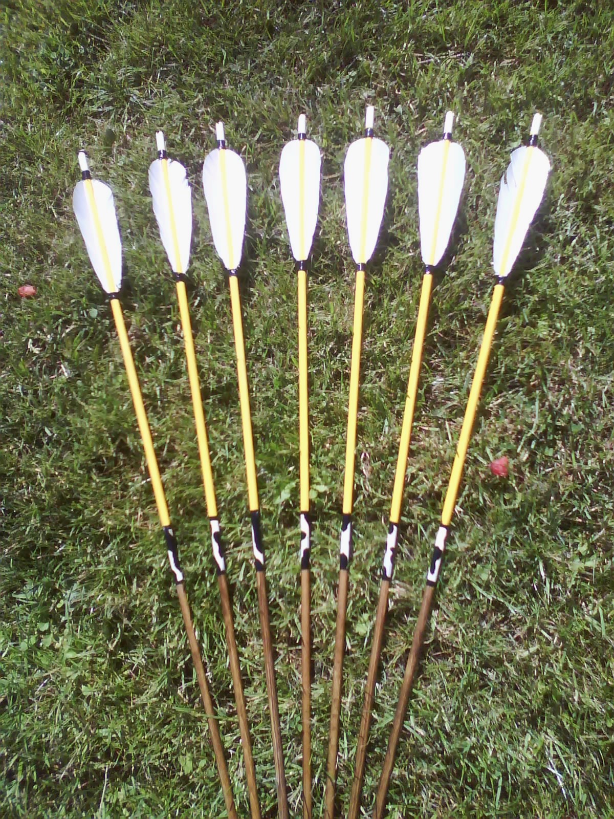 Zweitens, wenn ich mir die Nockkerbe auf dem vorletzten Bild genau anschaue, dann fehlen da so 2-3 züge mit einen 120'er Schleifleinen, die Bambusgrate sehen mir noch eine Idee zu scharf aus im Vergleich zur Fadenstärke.