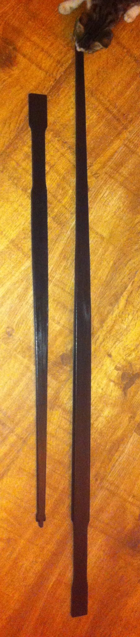 Griffbereich Dicke 2,4cm, Breite 2,5cm, Länge 25cm (auf je 6cm Länge 4cm Breit, je 1cm Fade, 11cm 2,5 Breit)