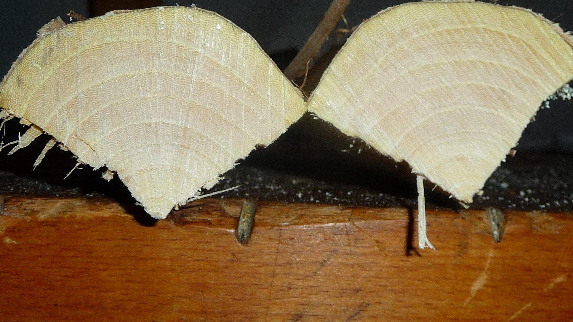 Die beiden Äste sind auf dem anderen, flacheren und geraderem Stave, ich denke mal ich werde aus dem einen Flachbogen machen, wenn er genug Masse hat. An den Ästen komm ich nicht vorbei, werde mit ihnen leben müssen... Ich bin aber etwas am Zweifeln was den kleinen Stave angeht, denn er ist nur max 2,4 cm dick und 5,3 cm breit. Die Wölbung ist also entsprechend hoch (für einen Flachbogen). Dass noch ein Stück holt drangeklebt werden muss um den Griff zu machen ist klar und kein problem, aber was die Wurfarme angeht...meinst Du da wird was draus?