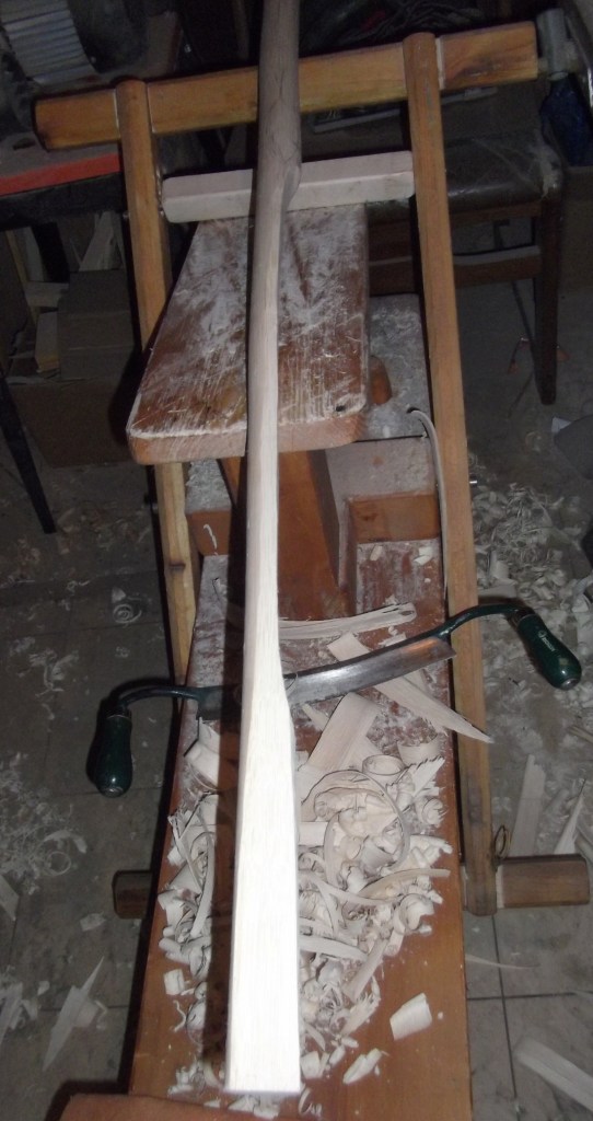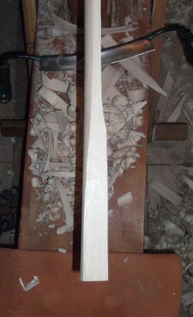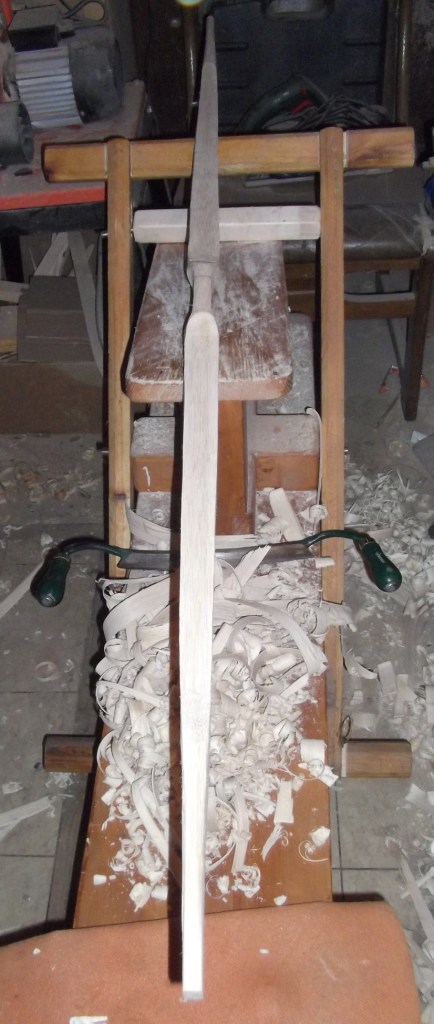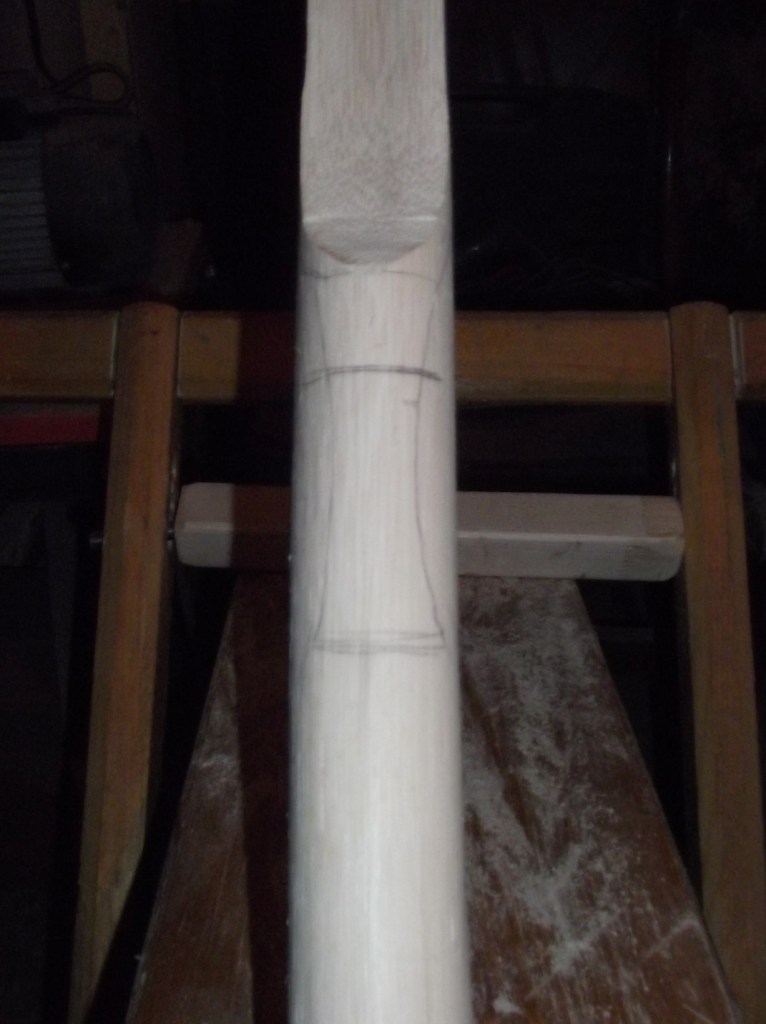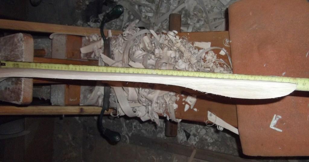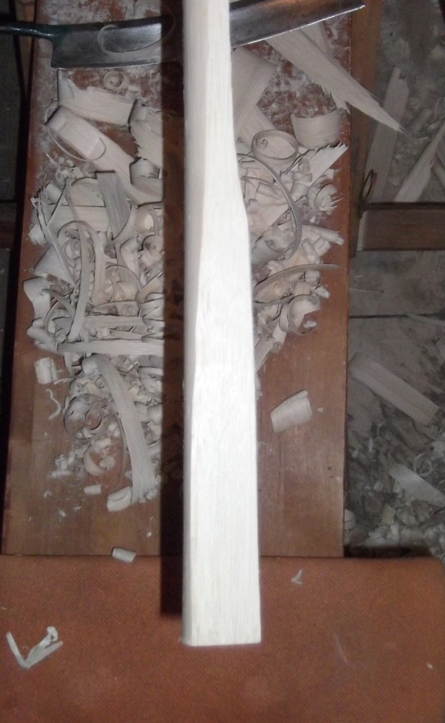 Das Griffstück wird allerdings erst später ausgeschnitzt, wenn die WA soweit in Form gebracht sind...