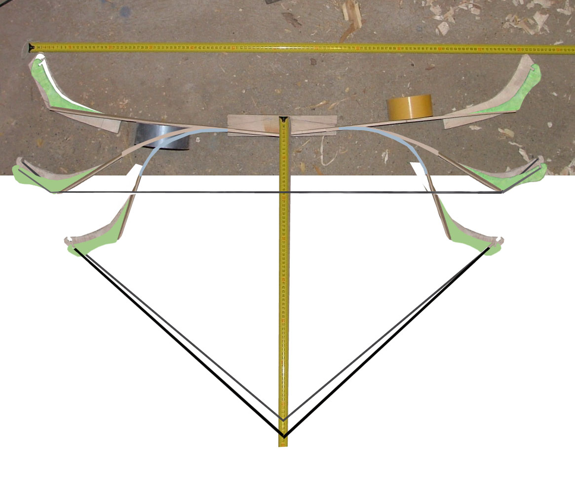 Eigentlich wollt ich den Symetrisch machen aber dann hab ich mir verschiedene Zeichnungen von Bogenfundenn aus Ungarn angeschaut 8-10jh und die wiesen überwiegend solch eine geringgradige Asymetrie auf. Ich habe inzwischen die Teile für 2 weitere Rahmen zugeschnitten die sich an einem mittelawarischen Bogen orientieren genaugenommen an den gefundenen Knochenverstärkungen wie sie im Reflexbogenbuch abgebildet sind.