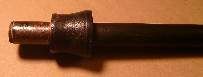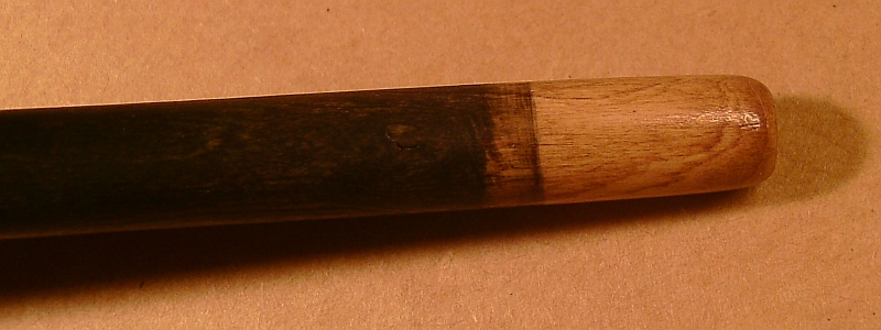DANN habe ich die endgültige Form gebogen, den Zapfen hergestellt, und als Übergang zu den Köpfen einen Hornring auf den Holm gesetzt. Dann feingeschliffen und schwarz gebeizt.