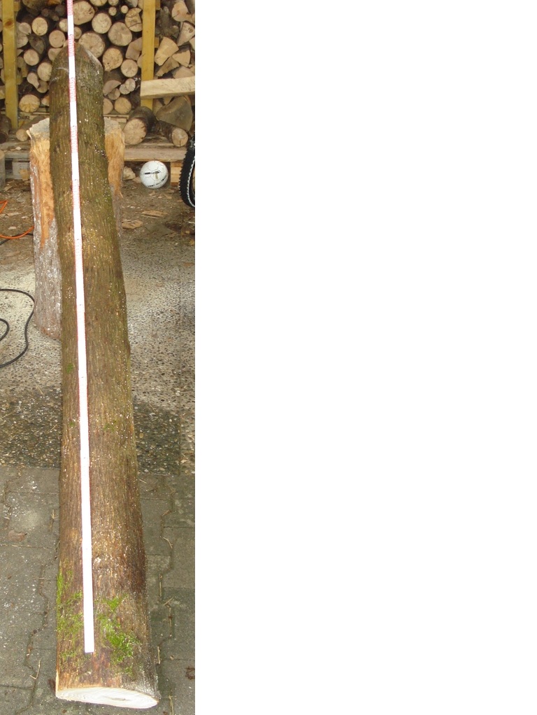Es sind jetzt 2 Stämme bei mir gelandet. Stamm 1 hat ca. 185cm länge und ca. 20cm Durchmesser, der zweite ist ca. 205cm lang und hat zw. 15 - 18 cm Durchmesser. Ich denke da sollte sich etwas draus machen lassen.