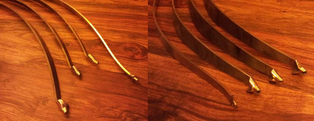 Daher habe ich mich damals entschlossen auf flachen Stahl zurückzugreifen. Diesen habe ich dann in Form geschnitten (bei einigen auch mit dem Laser, aber mit unbefriedigenden Ergebnissen), und die Enden nur leicht umformen müssen.