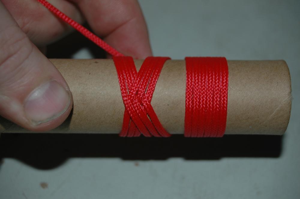 Ich nehme Stuhlflechtrohr für die kleinen Wicklungen, für die Große überm Griff Flechtschienen, aus dem gleichen Material.
