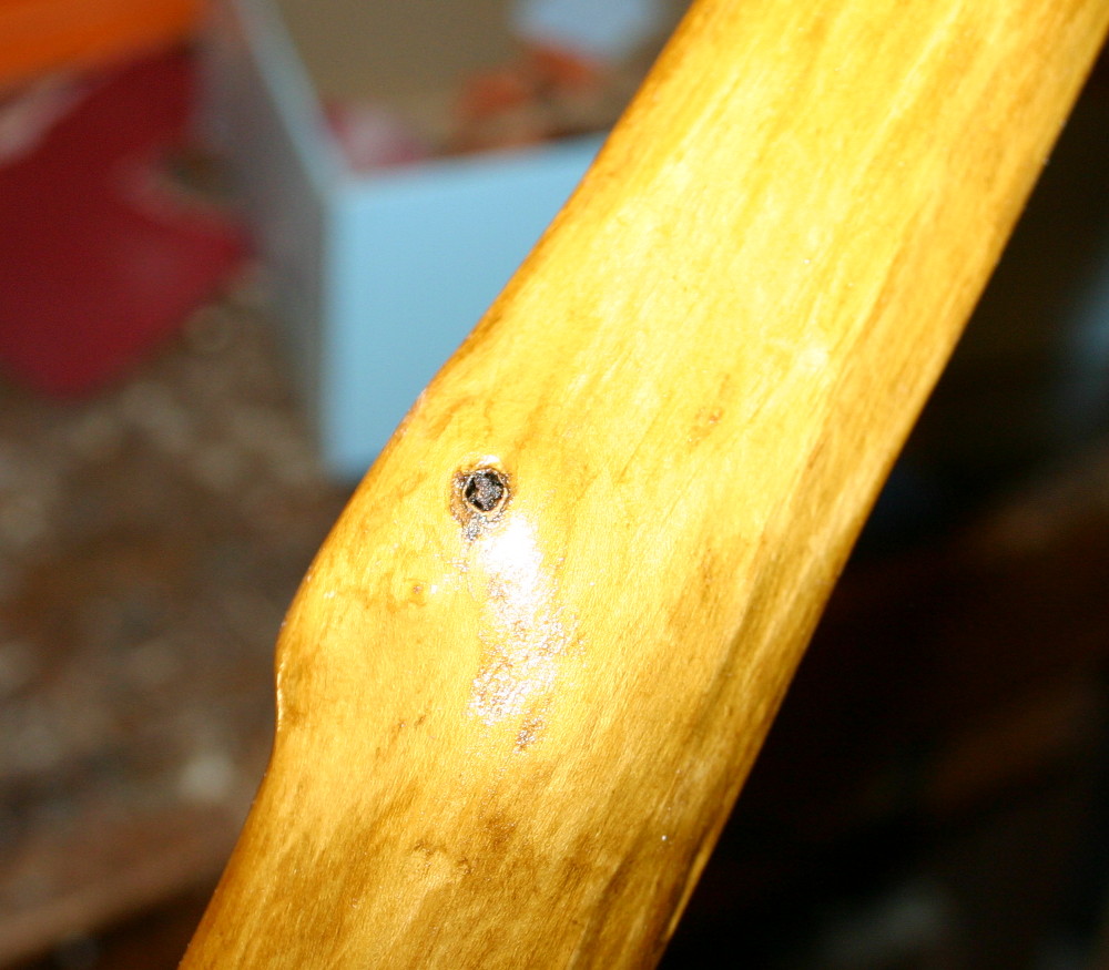 Heute Abend habe ich mal 30 Pfeile fliegen lassen, um zu sehen wie er wirft und wie sich die steiferen Stellen an den riesigen Astknubbeln verhalten. Es ging alles gut, er hat knapp 32 Pfund und ich bin eigentlich zufrieden.