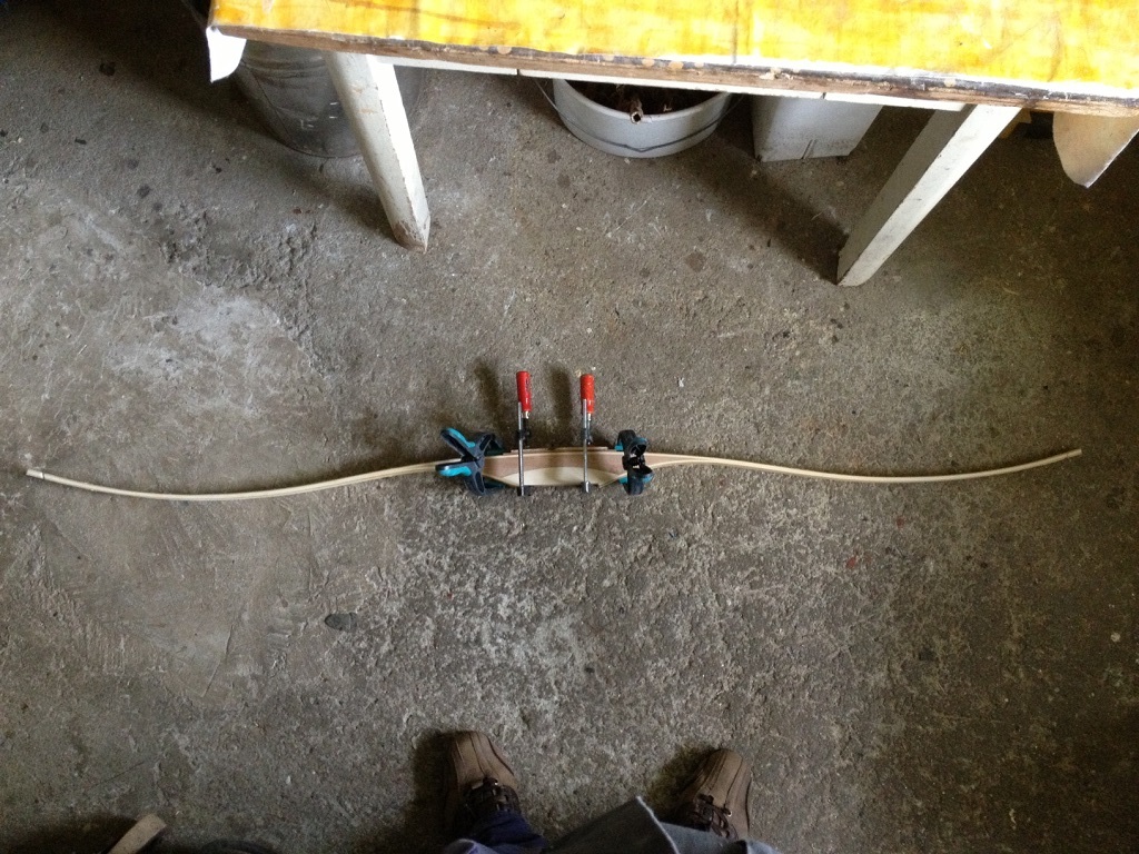 Ist der Bogen verklebt, wird beim Langbogen in den meisten Fällen pyramidal vom FO zum Tip verjüngt. Mordsmäßige Tillereien über die Seiten sind dann nicht mehr drin. Übers Glas geht auch nicht der Teufel, da man sonst Wurfkraft verschenkt.