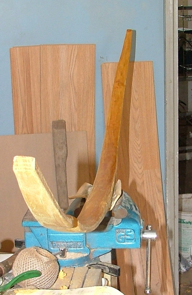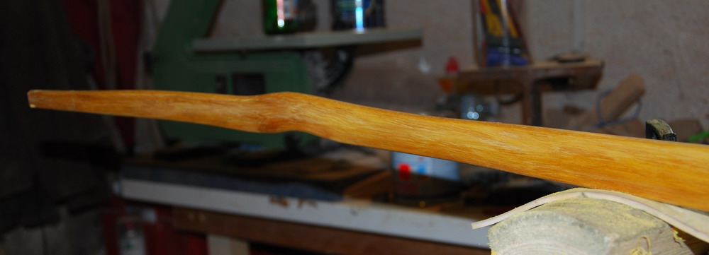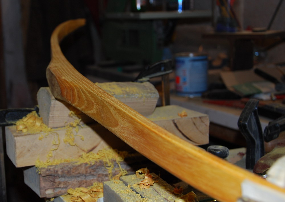 Wie oben schon beschrieben hab ich die Kontur des Bogens vorsichtig rausgearbeitet und die Dicke auf tillerbares Maß reduziert.