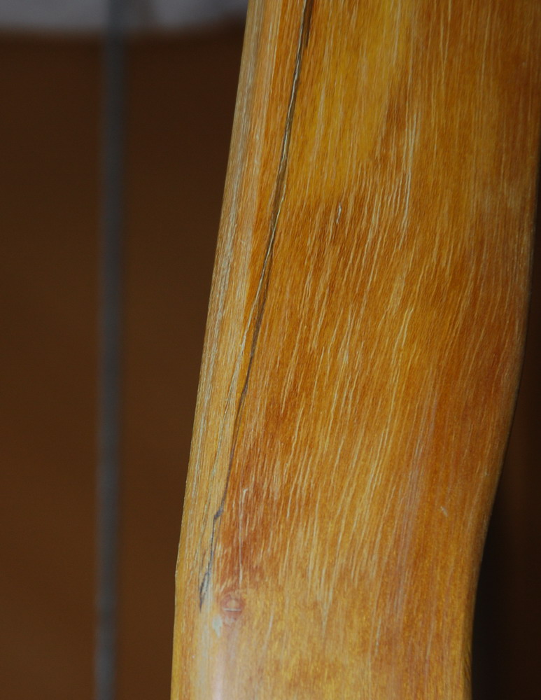 und natürlich ging die ganze Tillerei von vorn los, an der seitlichen Verwerfung war natürlich durch das entfernen des Ästchens eine Schwachstelle und ein wenig zu eilig in der Korrektur bin ich doch glatt unterhalb der Stelle durch die Jahresringgrenze gekommen, normal bei Osage kein großes Problem, aber unter dem Zug des Reflexes sofort Schwachstelle, also wieder korrigieren, zu dem Zeitpunkt war ich mir sicher, dass ich das angestrebte Zuggewicht schon längst hinter mit gelassen hätte, aber ich hab nicht aufgegeben.