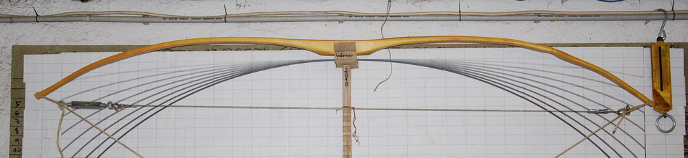 nun gings ein paar Stunden mit tillern dahin uns schließlich ist die Standhöhe erreicht. Dieser Bogen wäre ohne mein einhängbares Stahlseil mit den Wantenspannern in diesem Augenblick unweigerlich zerstört worden, beim langsamen Übergeben des Zugs auf das Stahlseil hab ich sofort gemerkt dass ein Wurfarm viel zu stark ist, dieses Ungleichgewicht wirkt sich bei so starkem Reflex auf Standhohe fatal aus, der stärkere Wurfarm streckt sich und wäre sicherlich umgeschlagen hätte ich nicht sofort wieder mehr Zug auf die lange Tillersehne gegeben.