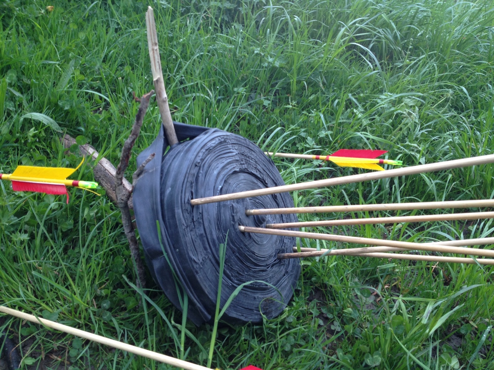Ich hätte ja ein bisschen Angst auf eine Gummischeibe zuschießen. Kommen da die Pfeile nicht postwendent zurückgeflogen? Auch Nägel in der Scheibe halte ich für ungünstig. Aber du kannst es besser einschätzen, wenn du schon eine gebaut hast.