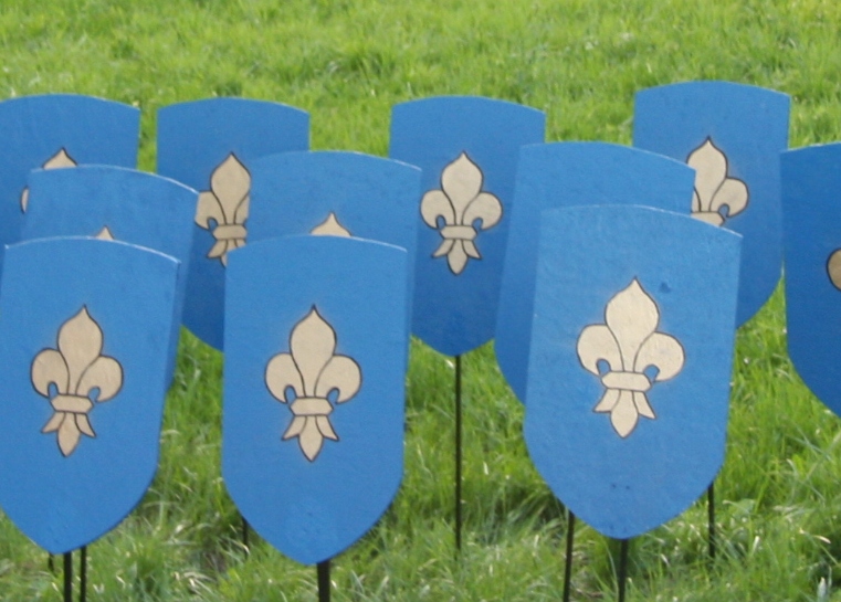 Die Wappen sind aus OSB Platten 10mm, sind an einer Drehmechanik befestigt die wiederum an einem Flachstahl dran ist,