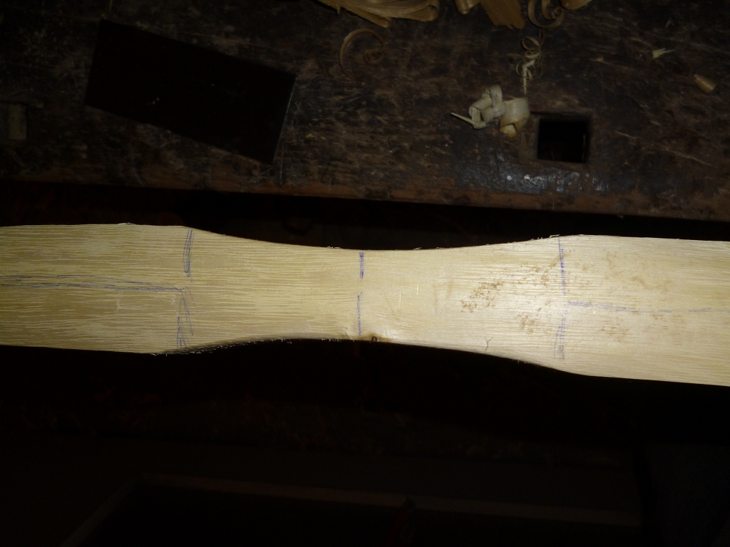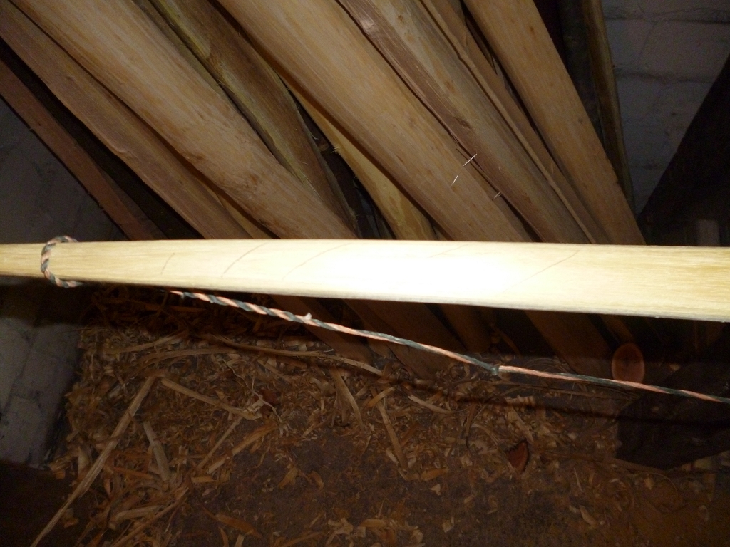 Nunja, erstmal weiter am Holz arbeiten. Erstmal den späteren Sehnenverlauf einzeichnen.