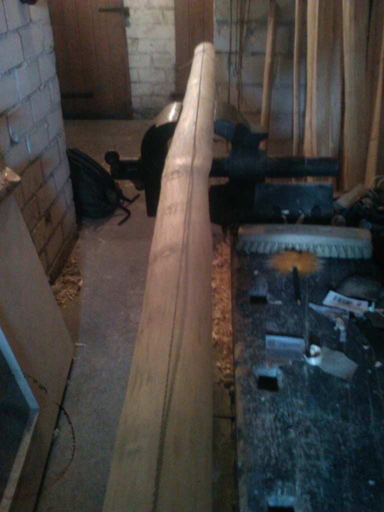 Hmm, nehmen wir Esche. 220cm Lang und gerade.