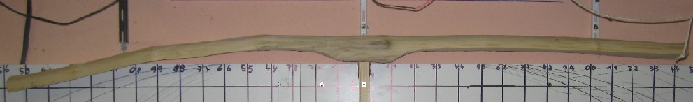 geschnitten am 17.12.2012, Gewicht nach dem groben Zuschneiden 2856g, heute nur noch 1850g und 12% Restfeuchte. 55mm gewachsener Deflex, leichter Drehwuchs, ansonsten kerzengerade, Länge 156cm, Breite zwischen 54 und 64mm, habe noch keine genaue Vorstellung vom Design, ausser, dass ich ihm wg. der Kürze kurze Recurves verpassen will, der Rest wird sich dann ergeben, geplantes Zuggewicht 50# +-5#