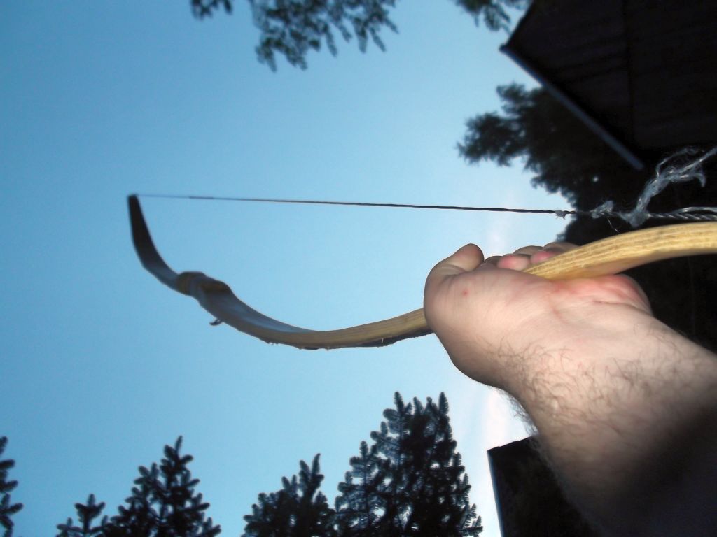 Ich tät mal sagen, wenn Du vom Balkon die Kifferkatze mit dem ersten Schuß erlegen kannst, dann kann der Bogen so bleiben ;) . Schmuckes Ding!