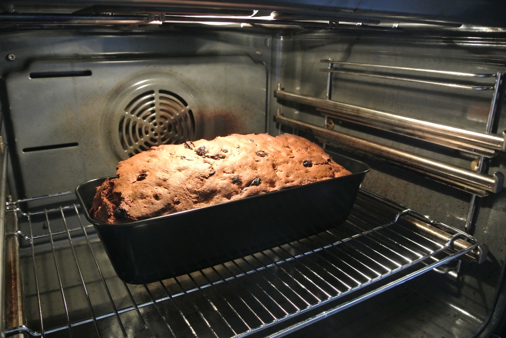 Sobald dann alles schön vermischt war kamm das Ergebnis in eine beschichtete ungefettete Backform und bei 200°C Umluft für ne Stunde in den vorgeheizten Ofen. Nach zehn Minuten roch es allerdings schon ein wenig nach Röstaromen. Deswegen habe ich auf 180°C runtergeschaltet.