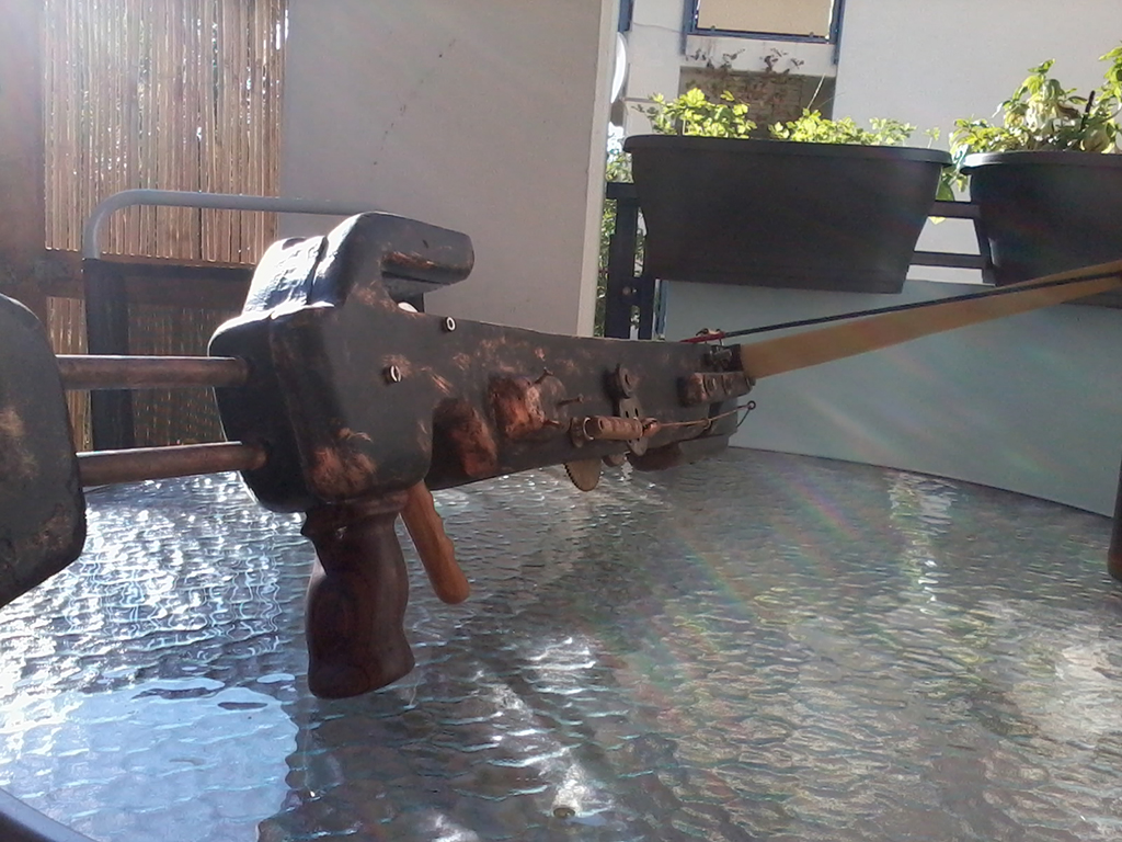 Hab heut die ganzen Einzelteile zusammengebaut so das FAST eine komplette Armbrust drauß geworden ist! Die Mechanik sitzt und es passt alles wieder zusammen.Der Laser lässt sich einschalten und und und..! Es fehlen trotzdem noch jeeede Menge großße und kleine Teile..die Zieloptik ist noch nicht dran..der Bolzenhalter ist noch nicht dran und nicht mal gebaut..die Beschläge fehlen fast alle noch und ein schicker Ledersack um den Abzug muss auch noch rum....!