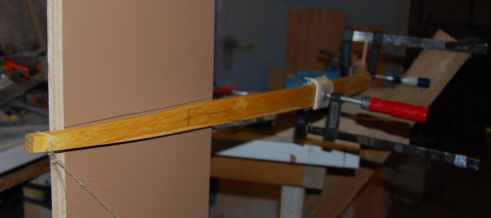 Ein kleines Problem ist, dass ein so reflexer Bogen beim Biegen im Griff gerne versucht auszuweichen indem die Wurfarme sich verdrehen also müssen die Wurfarme so fixiert werden das sie sich beim Biegen nicht verdrehen können.